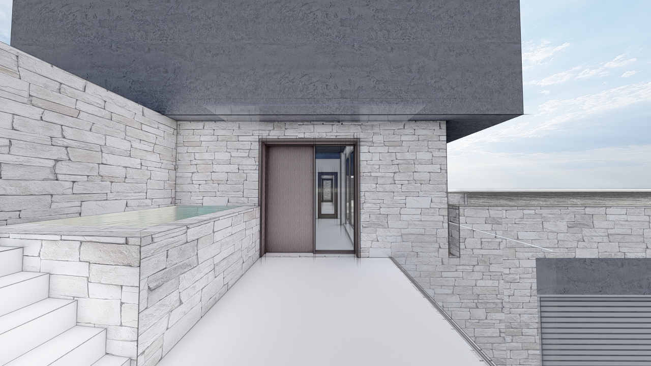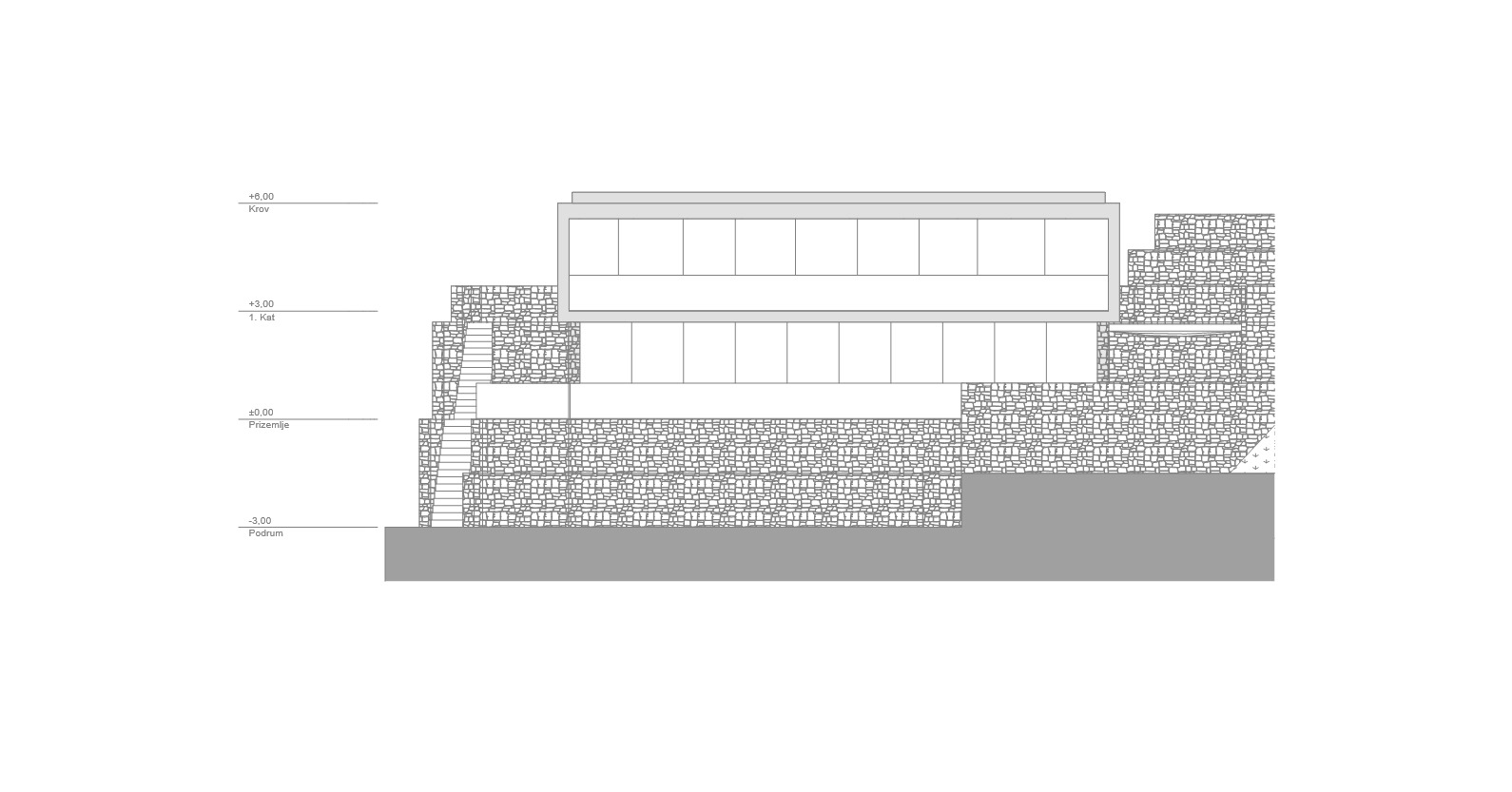 Arhitektonska interpretacija tradicijskog nasljeđa naglašena je teksturom, bojom i materijalima, stvarajući suvremenu obiteljsku kuću koja se harmonično uklapa u prirodno mediteransko okruženje Baške Vode i Makarske rivijere.