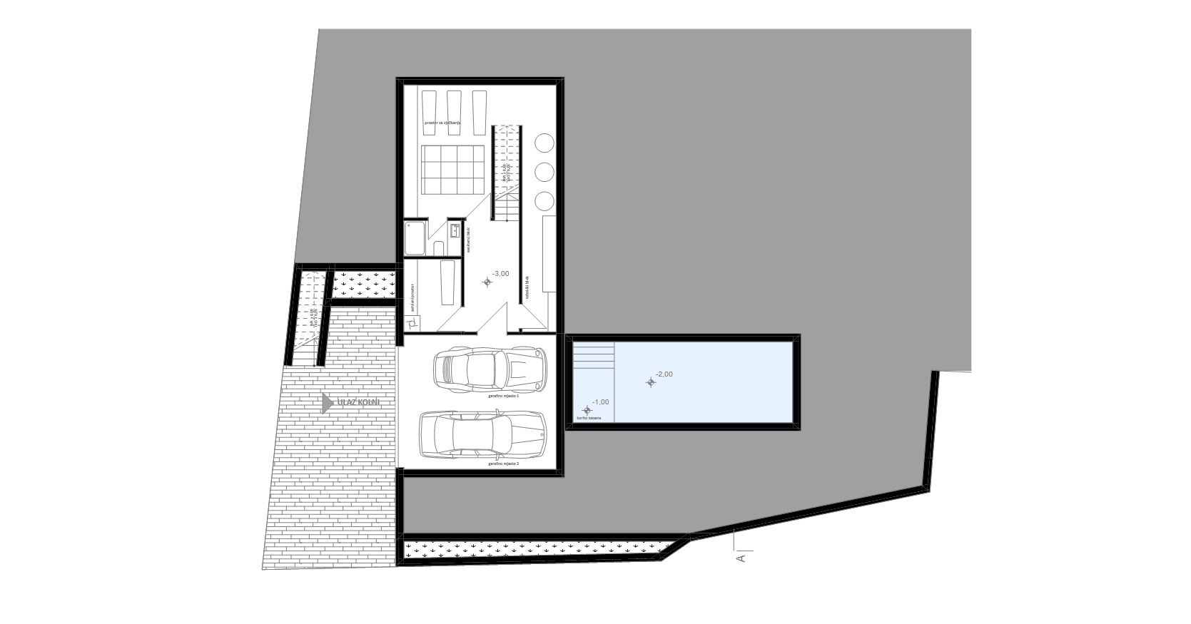 Smještena podno Biokova, na strmom terenu koji se obrušava prema Jadranskom moru, Kuća A projektirana je kao moderna obiteljska kuća u Baškoj Vodi koja istovremeno funkcionira kao ekskluzivna vila za iznajmljivanje. Ova obiteljska kuća oblikovana je metodom stackinga, kojom se više volumena povezuje u skladnu arhitektonsku cjelinu, stvarajući dinamične i funkcionalne prostore.